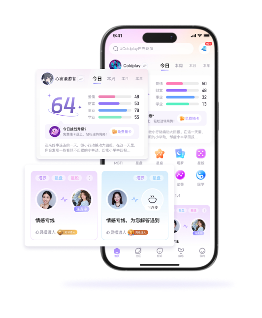 在这里,好奇心是唯一的入场券!无论你是想通过专业的心理测试剖析深层自我,探索风靡全球的MBTI人格密码;还是对神秘的星盘轨迹充满遐想,想一窥紫微斗数揭示的命运脉络;亦或是想从源远流长的国学智慧中汲取处世哲学与心灵养分……